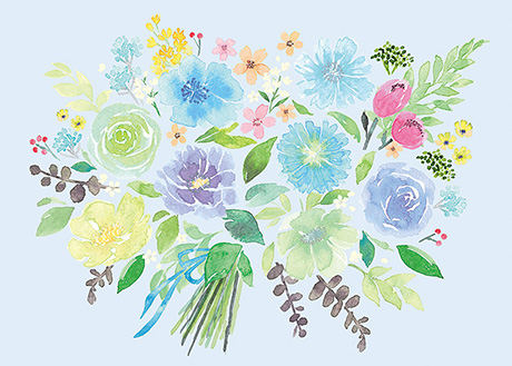 商品名称:寄せ書きカード 花柄 ブルー C02-0009